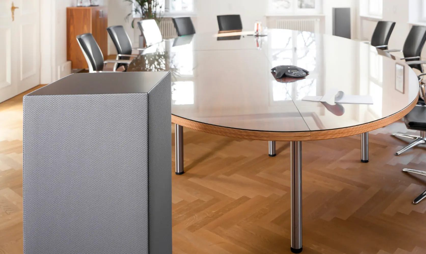 Die Kombination aus Schallabsorption und optischer Wirkung macht Akustik-Säulen zur idealen Lösung für repräsentative Räume, in denen Akustik und Design gleichwertig betrachtet werden.